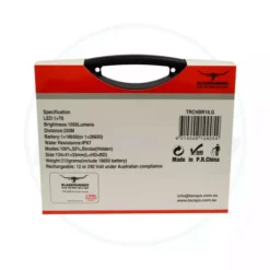 This Bladerunner waterproof torch (Model: TRCHBR16.G) is powered by a rechargeable lithium-ion battery with wall and car charger.