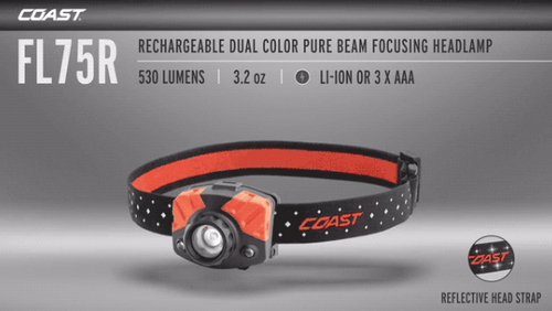 With Coast’s commitment to quality, the FL75R Headlamp is impact resistant, weather resistant and its LED is virtually unbreakable. The FL75R Headlamp is backed by Coast’s lifetime warranty against defects in materials and workmanship. Tested and rated to ANSI/FL1 standards.