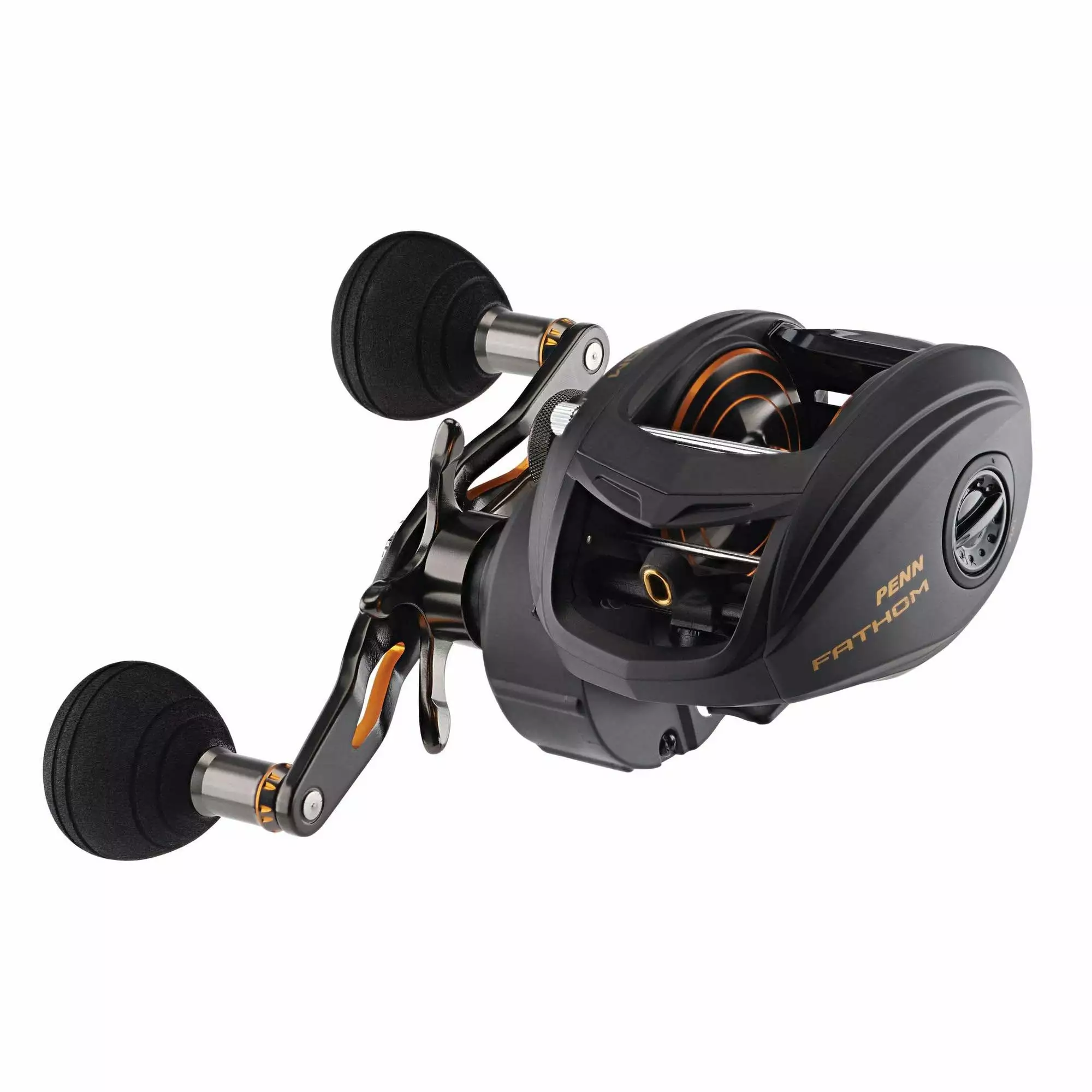 The PENN Fathom low profile baitcast reels offer all the features you need to tackle the toughest saltwater fish. The Full Metal Body and Right Side plate, matched with a brass main gear and bearing supported pinion offer a drivetrain with unparalleled power, while the TiN Coated Level Wind System and Synchronized Drag and Level Wind system (*400 size only) give extra durability under high drags.