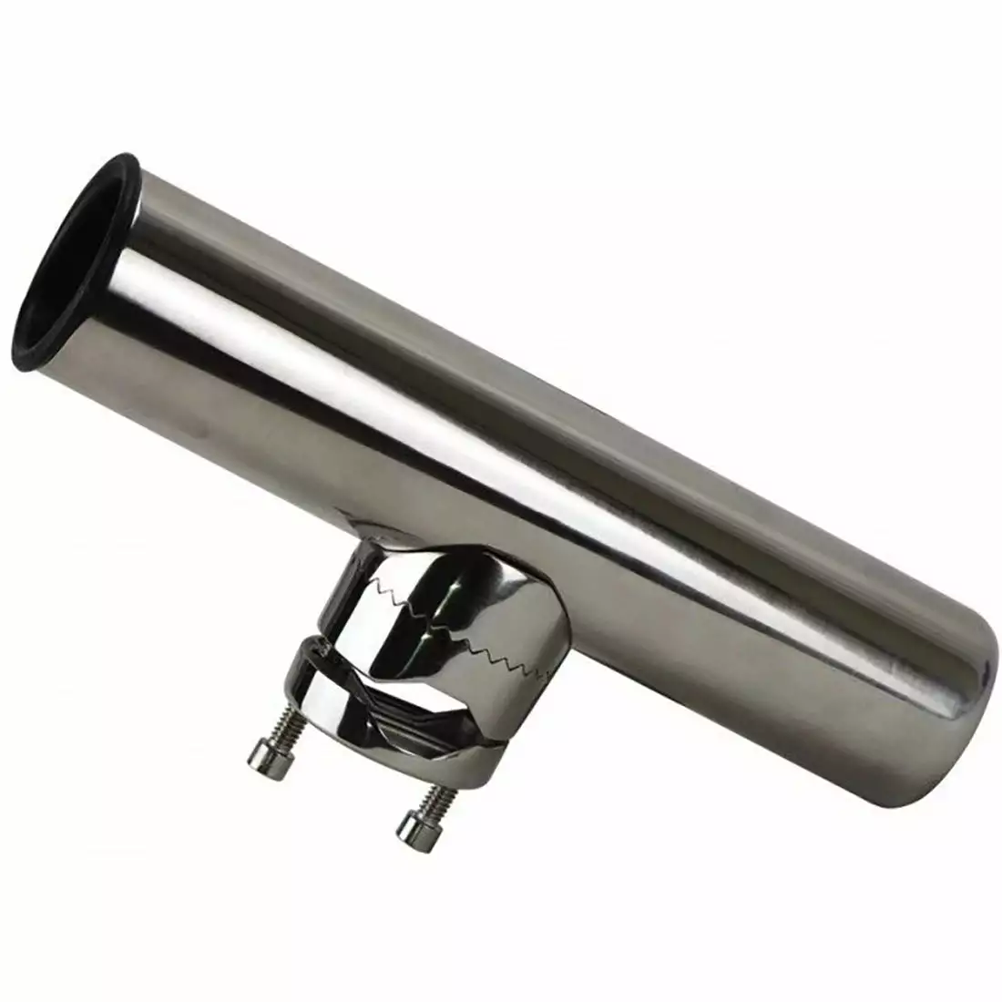 Clamp On Stainless Steel Rod Holder with a hard plastic liner and G316 Stainless Steel clamp allows 360° rotation. To suit 25-32mm Rails.