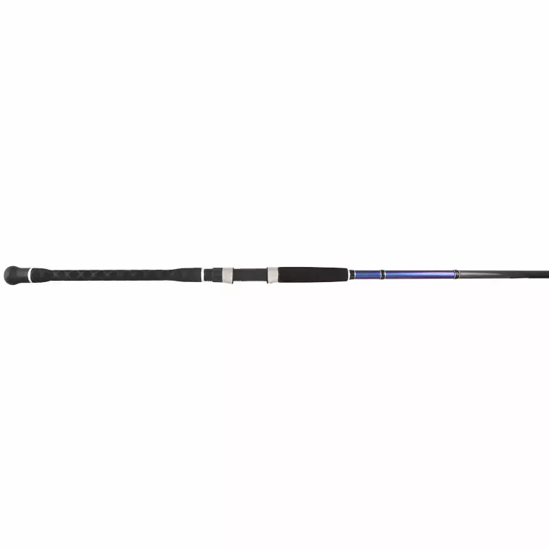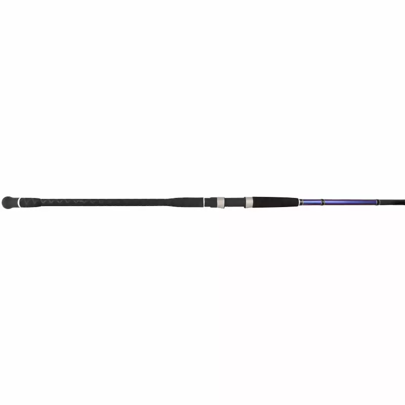 The stunning looking cross-weave heat shrink butt design is durable yet light weight, the blue chameleon finished logo detail is perfectly matched with the deep blue blank and well-complemented with the Fuji guide components and deluxe reel seat.