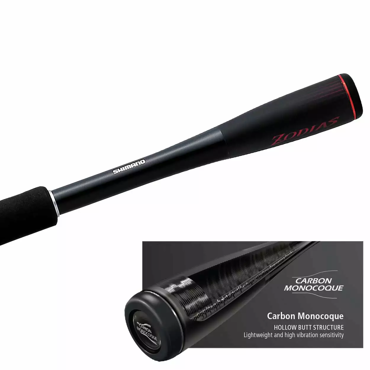For 2020, the Zodias has undergone a significant upgrade and now features Shimano’s exclusive Carbon Monocoque Butt for the ultimate in sensitivity. The Full Carbon Monocoque rod butt is made of a hollow carbon construction, eliminating the use of EVA from the rear grip. This results in a very lightweight construction that is extremely sensitive and improves vibration transmission through the rod blank to your hand when working a lure. To provide the exact balance between power and finesse, the 2020 Zodias continues to feature Shimano’s Hi-Power X graphite blank and Ci4+ Reel Seat and upgraded Fuji Stainless Alconite K guides with a SiC tip. With 12 models in the range that have been engineered with specifically tuned actions for a range of lure fishing styles. The rods are finished with the slick red and black cosmetics that have made the Zodias series a perfect match for many Shimano reels.