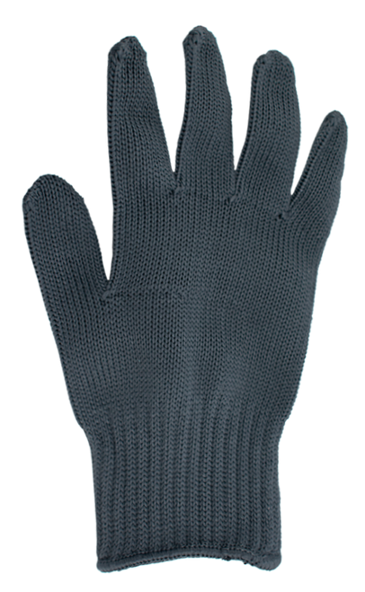 The construction of the hi-tech fabric combines a cut-resistant stainless steel core interwoven with polyester and vinyl threads to form a protective layer for your hand.