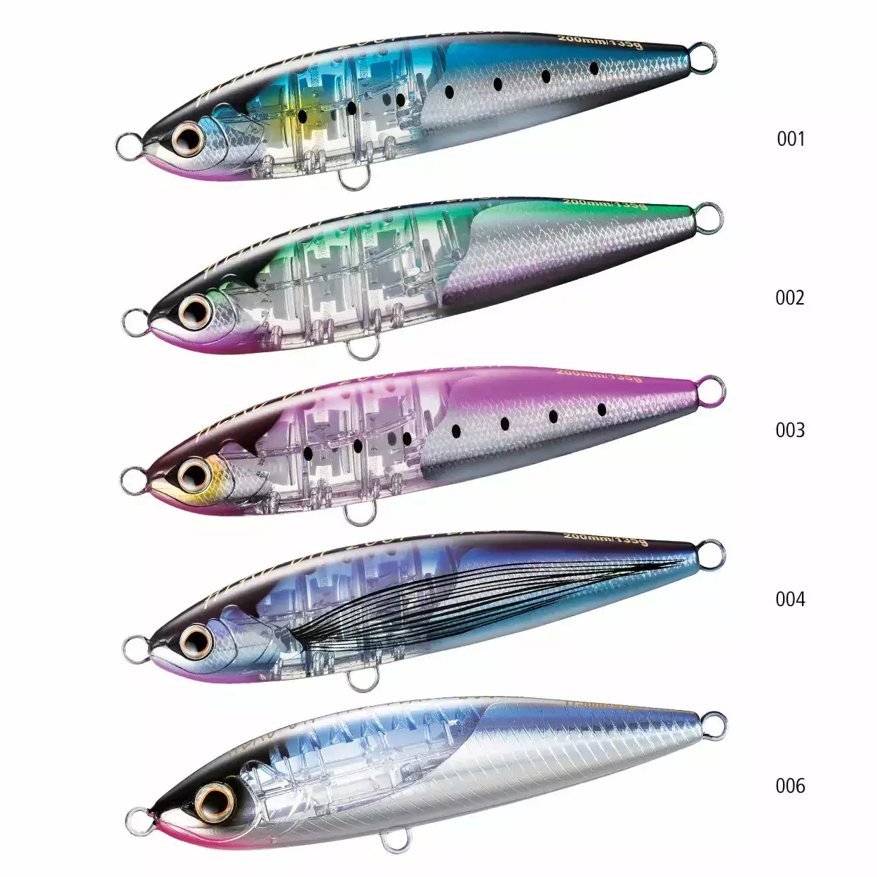 Featuring Shimano’s market leading Flash Boost and AR-C technology, the Ocea Head Dip is a floating stickbait designed to be cast amongst frenzied bait balls. Available in a 175mm and 200mm size, weighing 97g and 135g respectively. The patented Flashboost system uses a reflective mirror that creates a continuous flash within the body through kinetic energy. When retrieved, the lure imitates a wounded baitfish by quickly diving below the surface and returns to a vertical position with the head sitting above the water on the pause. Combined with four exciting colours, this lure will attract hard-fighting pelagic species every inch of the way back to the boat.