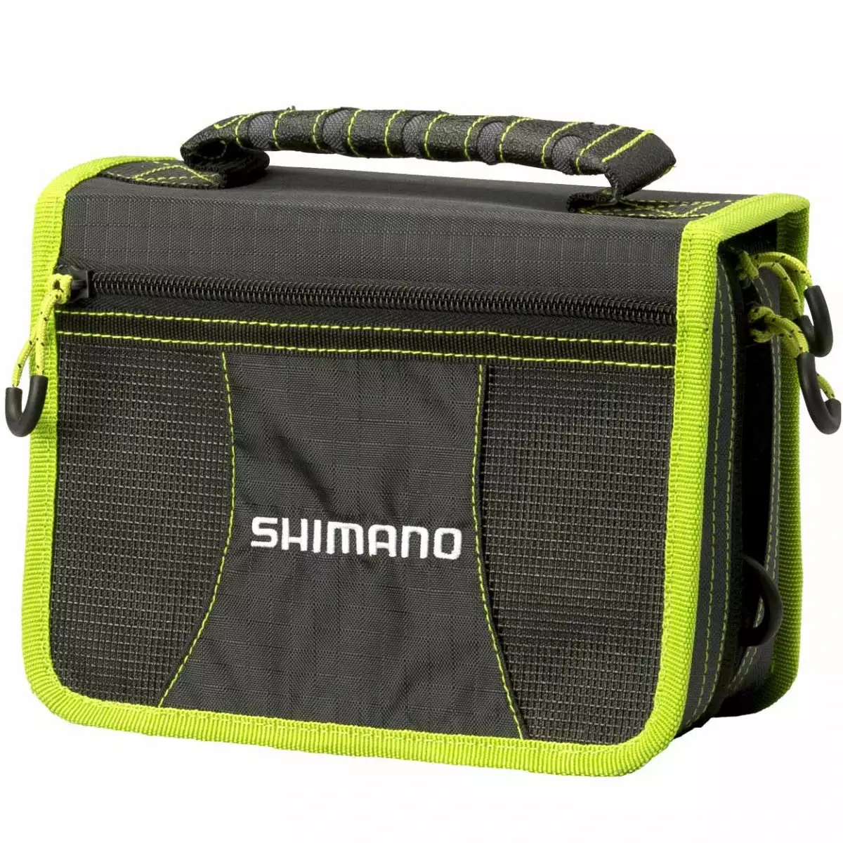 The Shimano Tackle Wallet is a compact tackle storage solution designed to hold your must have lures and accessories. Constructed from a hardwearing 420D polyester fabric and featuring bungee cord nylon zips that ensure easy access to the provided tackle box, zip lock plastic sleeves and net lined compartments. The Shimano Tackle Wallet is perfect for land based anglers who like to travel light but with all the right gear as they move from spot to spot.