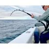 Shimano’s Tiagra Hyper game rods have those desired custom features and performance, but at an off the rack price. The new X5 blanks these rods are built on have a reduced diameter, but higher torsional twist resistance and greater resistance to overloading. The Hyper series also features the strongest, lightest game fishing componentry available; Rollers are Aftco, with oversized tips, while the sword rod makes use of braid-friendly Fuji SiC fixed guides and tip. Butt configurations utilise Pac Bay Channel Lock Seats and custom detachable carbon butts, with the exception of the 37 and 60kg chair rods, which are Aftco Unibutts. Foregrips are Winn polymer that provide the custom build look and function, but without the price.