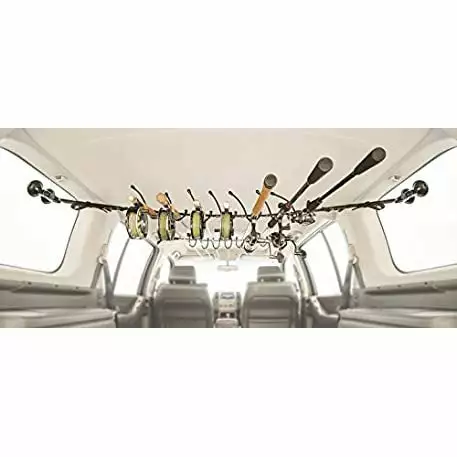The Smith Creek Rod Rack is the heavy-duty universal fishing-rod rack for SUV’s, Station Wagons and Vans. The innovative and patented racking system holds seven rod and reel combinations overhead out of the way. Easy to use locking shock cord holders secure and support rods without rattles or damage even on the roughest roads.