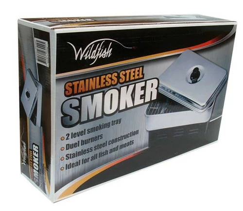 The ‘Wildfish’ smoker cooker is perfect for hot smoking fish, poultry and meats. Constructed from long life stainless steel the smoker cooker contains 2 smoking racks, a stainless steel drip tray and is supported on an elevated stand which houses 2 spirit burners for even cooking.