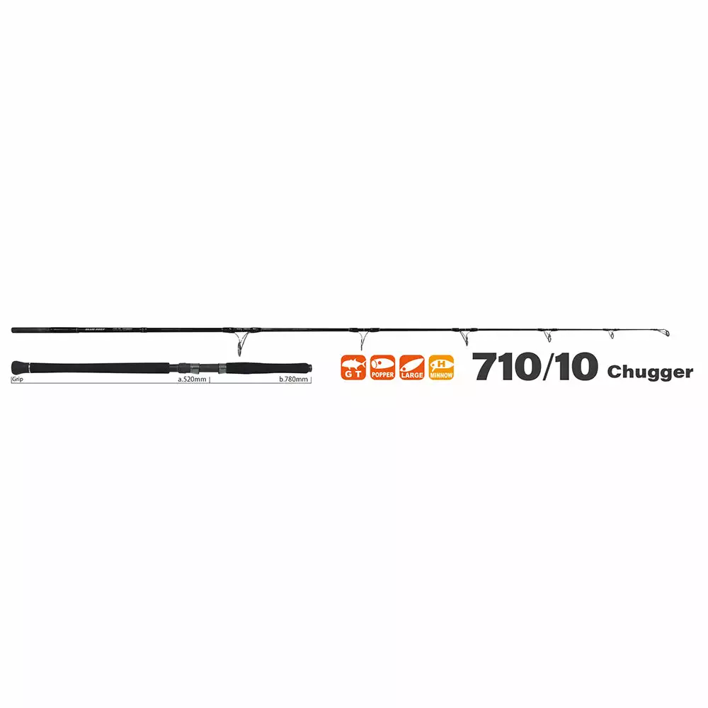 This is the most powerful model in the BlueReef series. The design of this blank allows anglers to manipulate large diving pencils and poppers with a large cup face. The rod is extremely tough and stiff – required for huge GT fights. The Chugger allows you to manipulate the lure at a very long distance with any action.