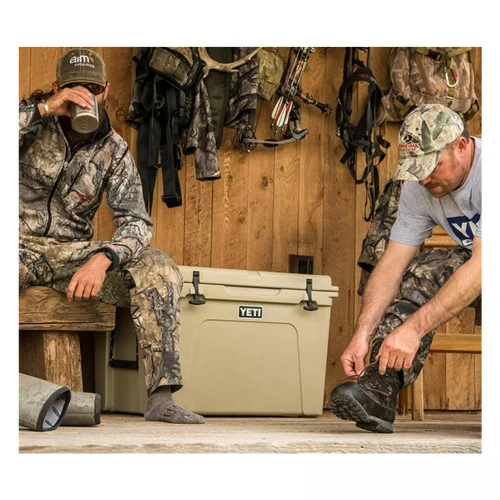 We designed the YETI Tundra® 105 outdoor cooler with more height and a smaller footprint, so it takes up less room in your boat or truck bed. That extra altitude lets you stack your meats and drinks up high with enough room for a layer of ice on top. This body shape means greater capacity and longer ice retention than standard coolers, and the benefits don’t stop there. The Tundra® 105 is dry ice compatible, so you can keep everything cooler for even longer than with standard ice and with less weight. It’s the perfect outdoor cooler for extended hunting and fishing trips.