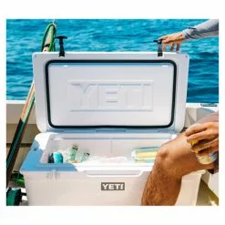 The YETI Tundra 45 combines versatility with durability. This premium cooler is infused with that legendary YETI toughness. It has a durable rotomolded construction and up to two inches of PermaFrost Insulation. It’s UV-resistant and damn-near indestructible. The durable, marine-grade polyester rope handles with textured grips let you easily haul your Tundra 45 to the campsite and out on quick hunting excursions. It’s also great for a day on the lake, due to its molded-in tie-down slots and non-slip feet. NOTE: All Tundra models come standard with one dry goods basket.