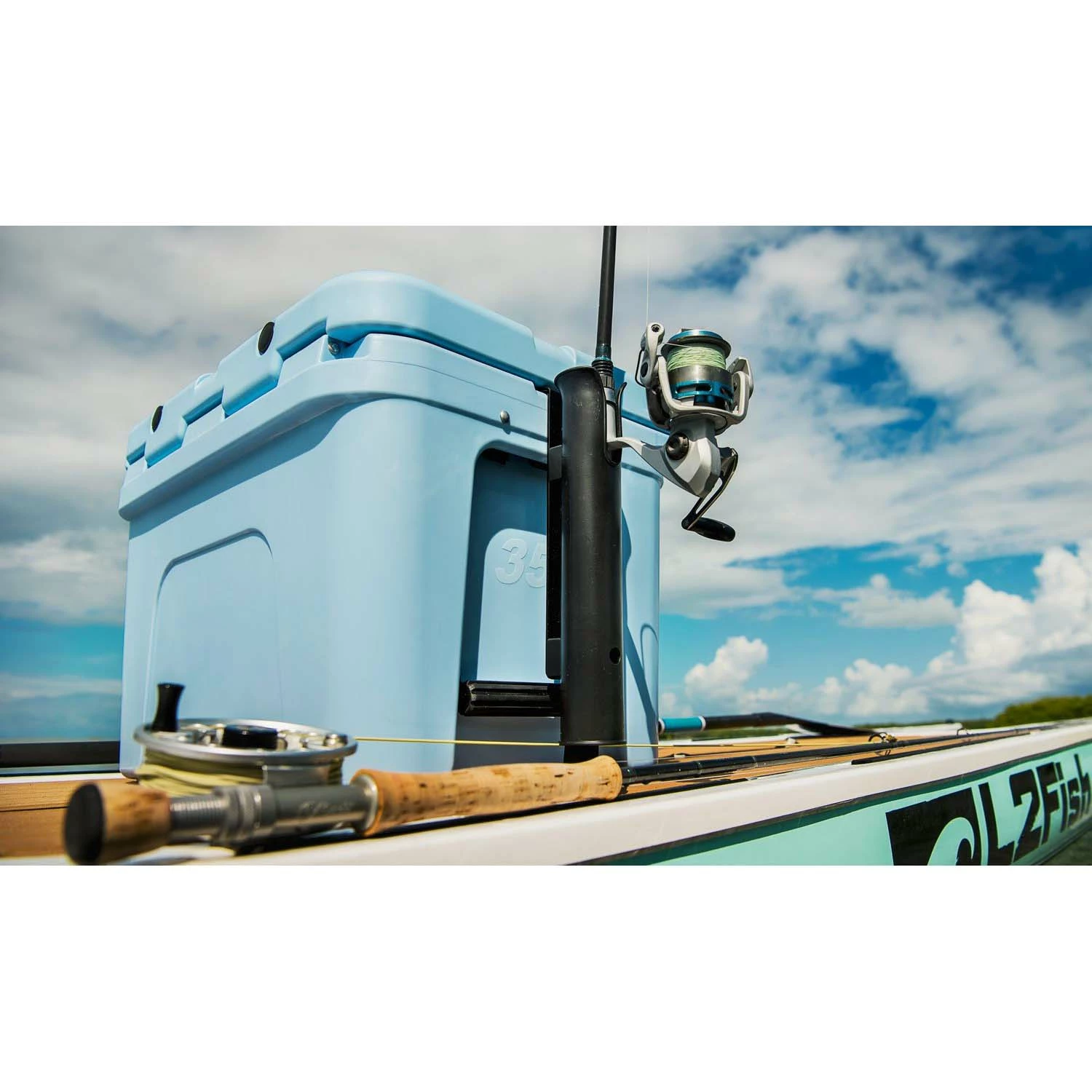 Gain easy rod access whether paddling or boating. Our Rod Holster is made from a single heavy-duty polypropylene tube, attached to a sturdy, stainless steel, powder-coated bracket. It slides securely into the AnchorPoint Tie-Down Slot of your YETI cooler without getting in the way of the lid and makes a secure storage option for your casting and spinning rods.